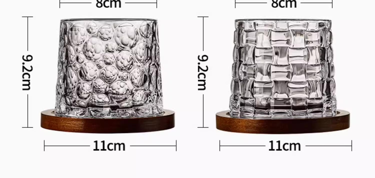 WhirlGlass™ 280ml Rotating Whiskey Glass with Bamboo Base – 6 Unique Designs