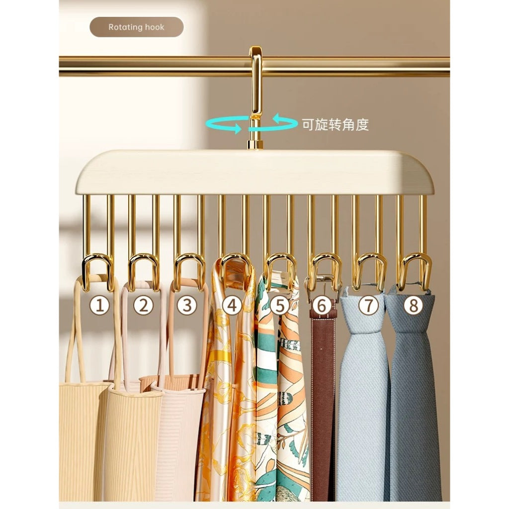 Transform your wardrobe into an organized and stylish space with these multi-functional wooden hangers. Order now for a smarter way to manage your accessories and garments!